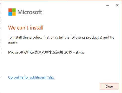 同一部電腦上不能同時有使用「隨選即用」和 Windows Installer 安裝的 Office