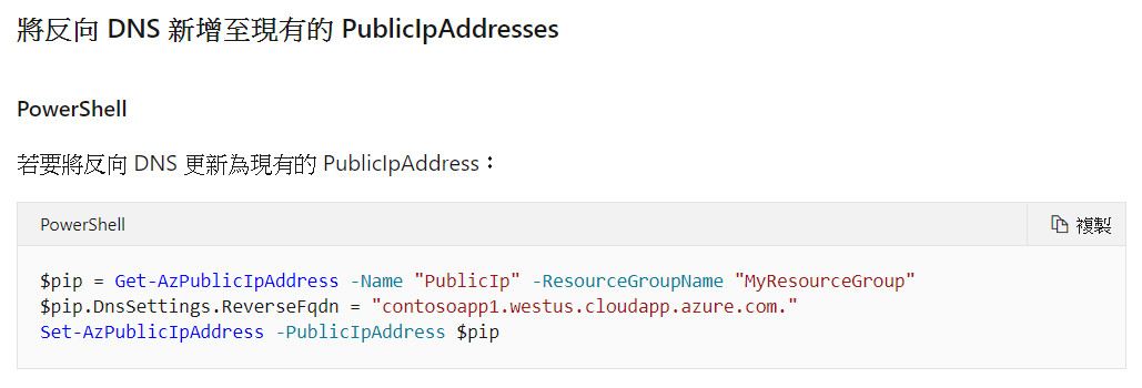 預設情況Azure IP不會設定DNS反向解析,如果有需要可自行通過powershell或者CLI設定